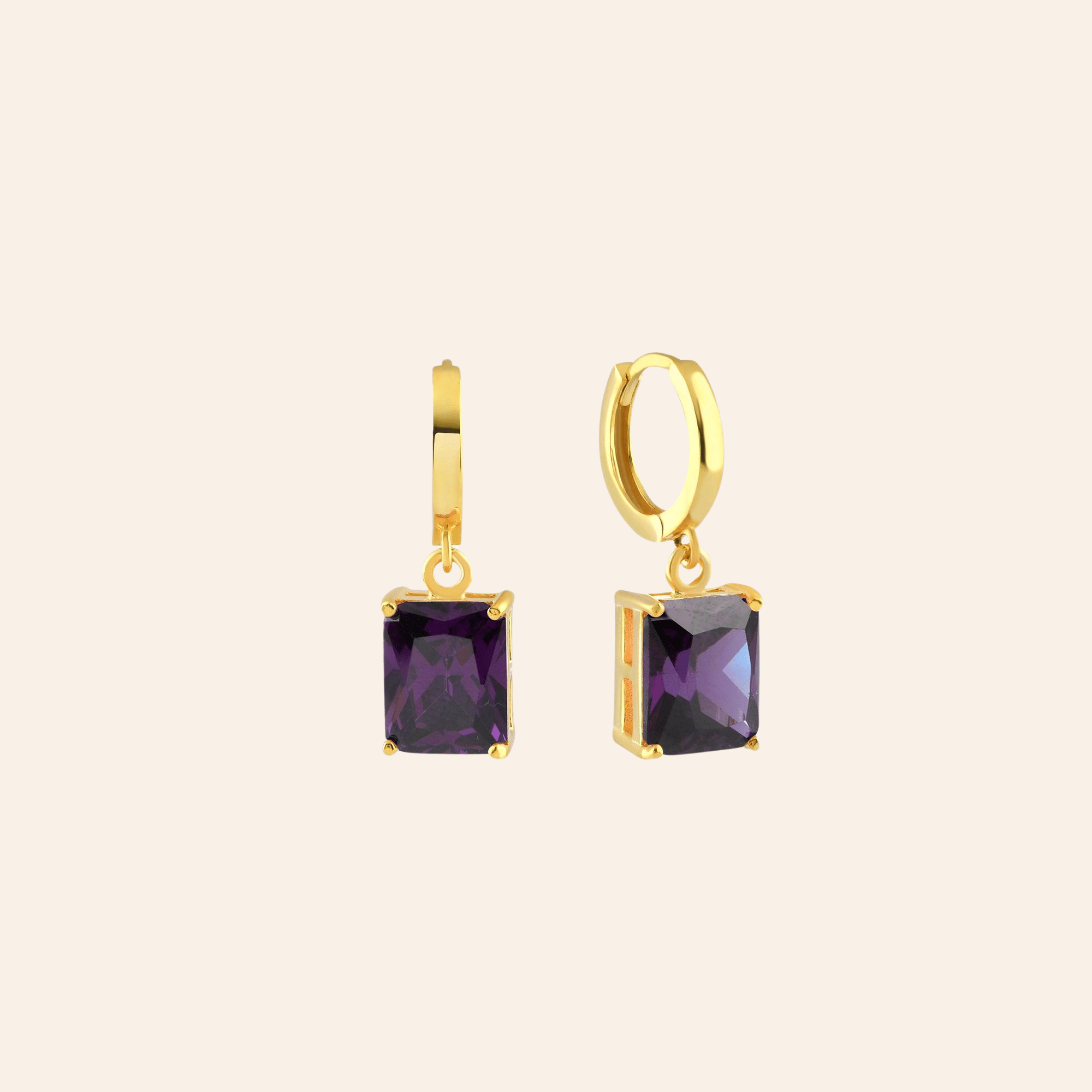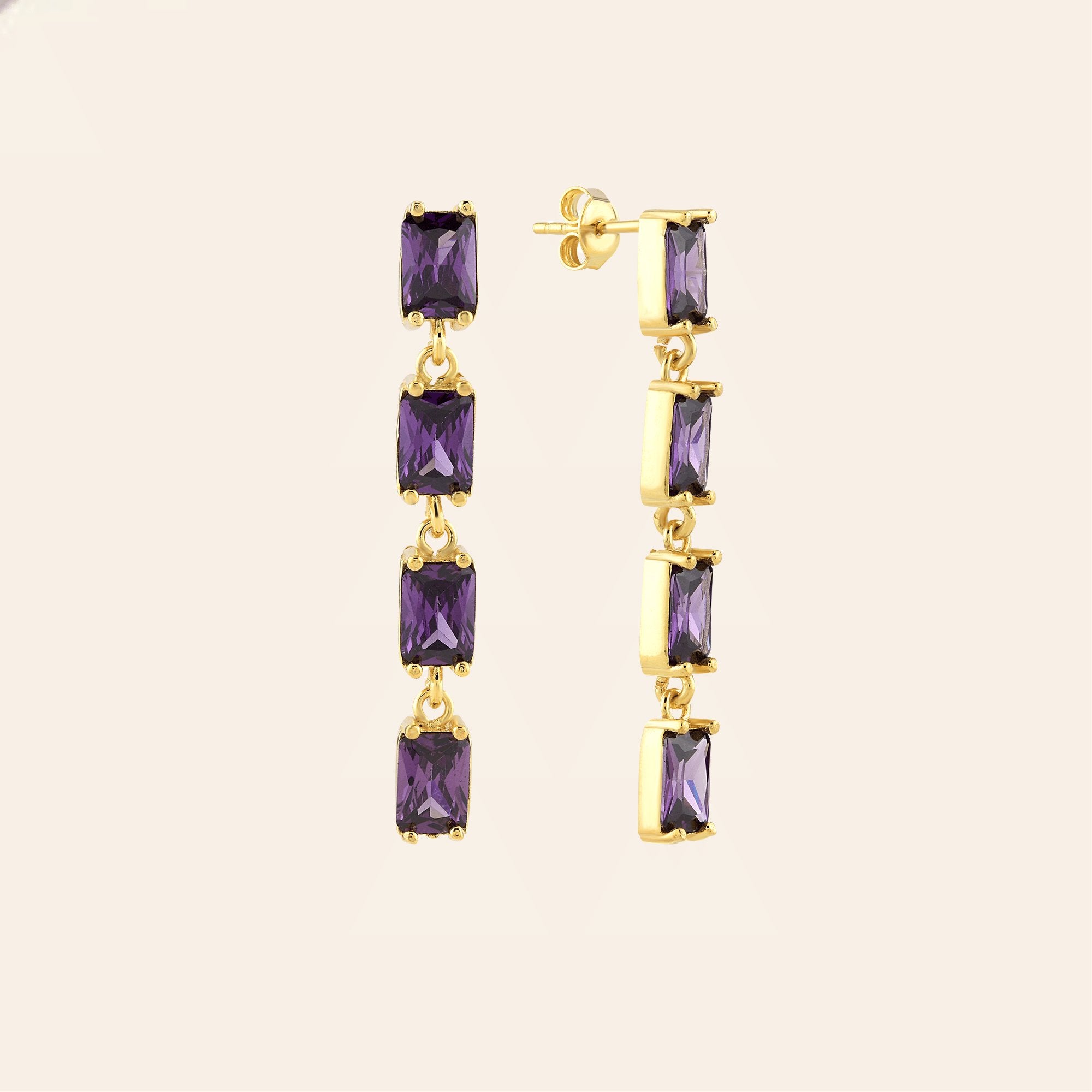 Ametist Zirconia Taşlı Büyük Baget Kesim Küpe
