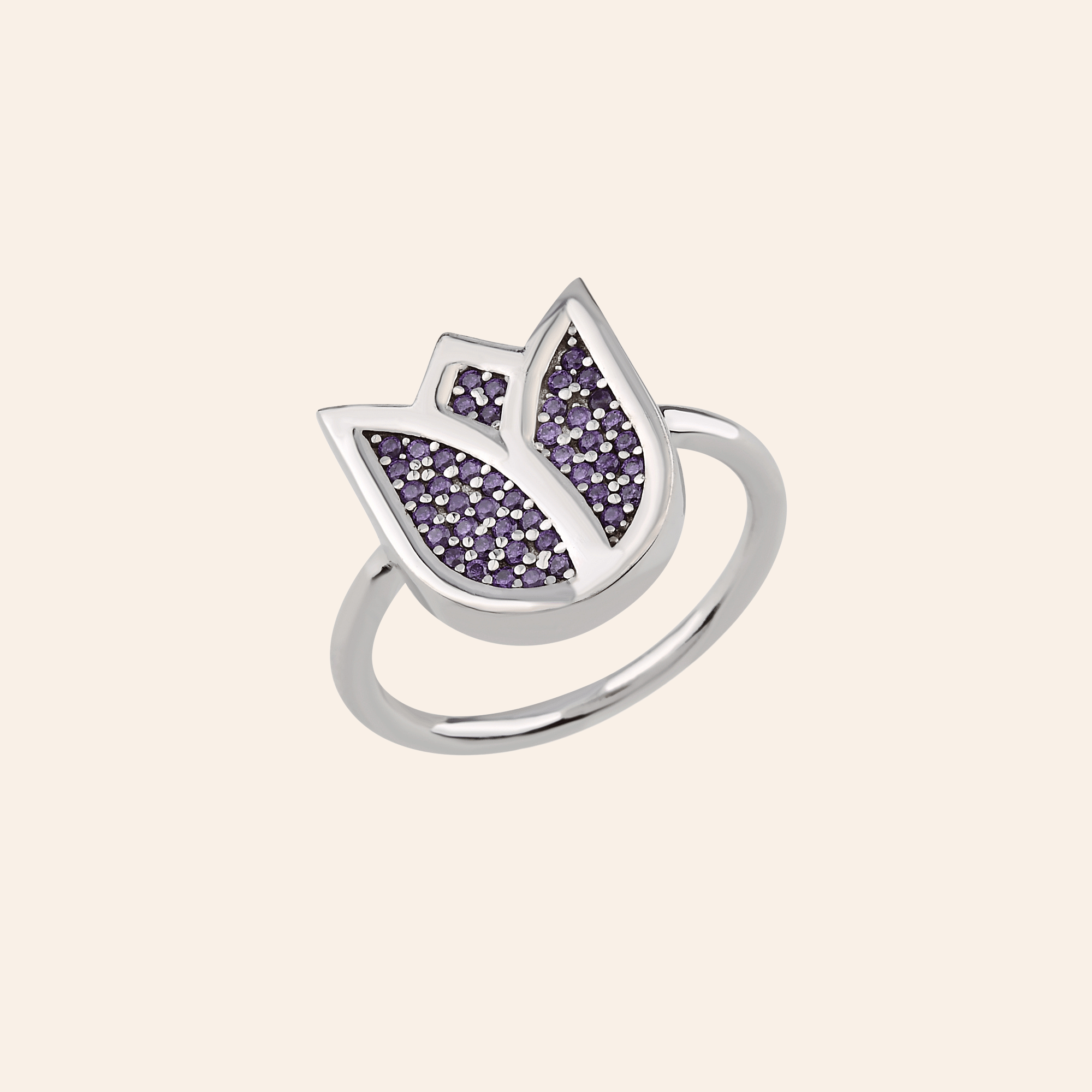 Ametist Zirconia Taşlı Damla Kesim Tektaş Yüzük