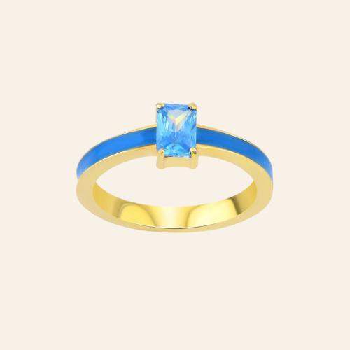 Aquamarine Zirconia Taşlı Kare Kesim Tektaş Yüzük