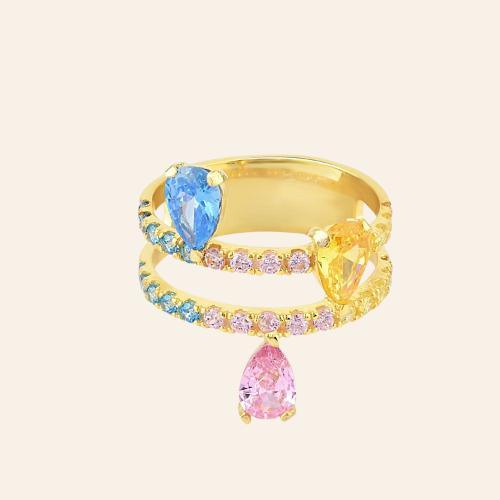 Champagne Zirconia Taşlı Damla Kesim Tektaş Yüzük