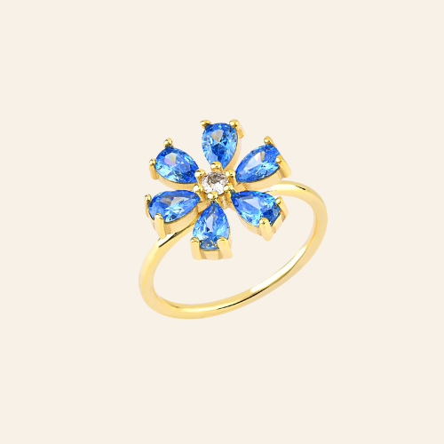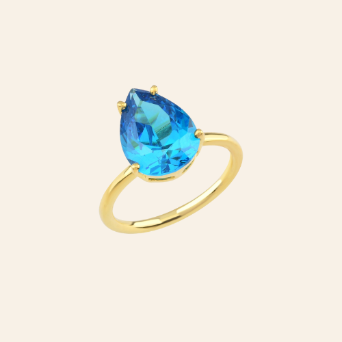 Aquamarine Zirconia Taşlı Damla Kesim Tektaş Yüzük