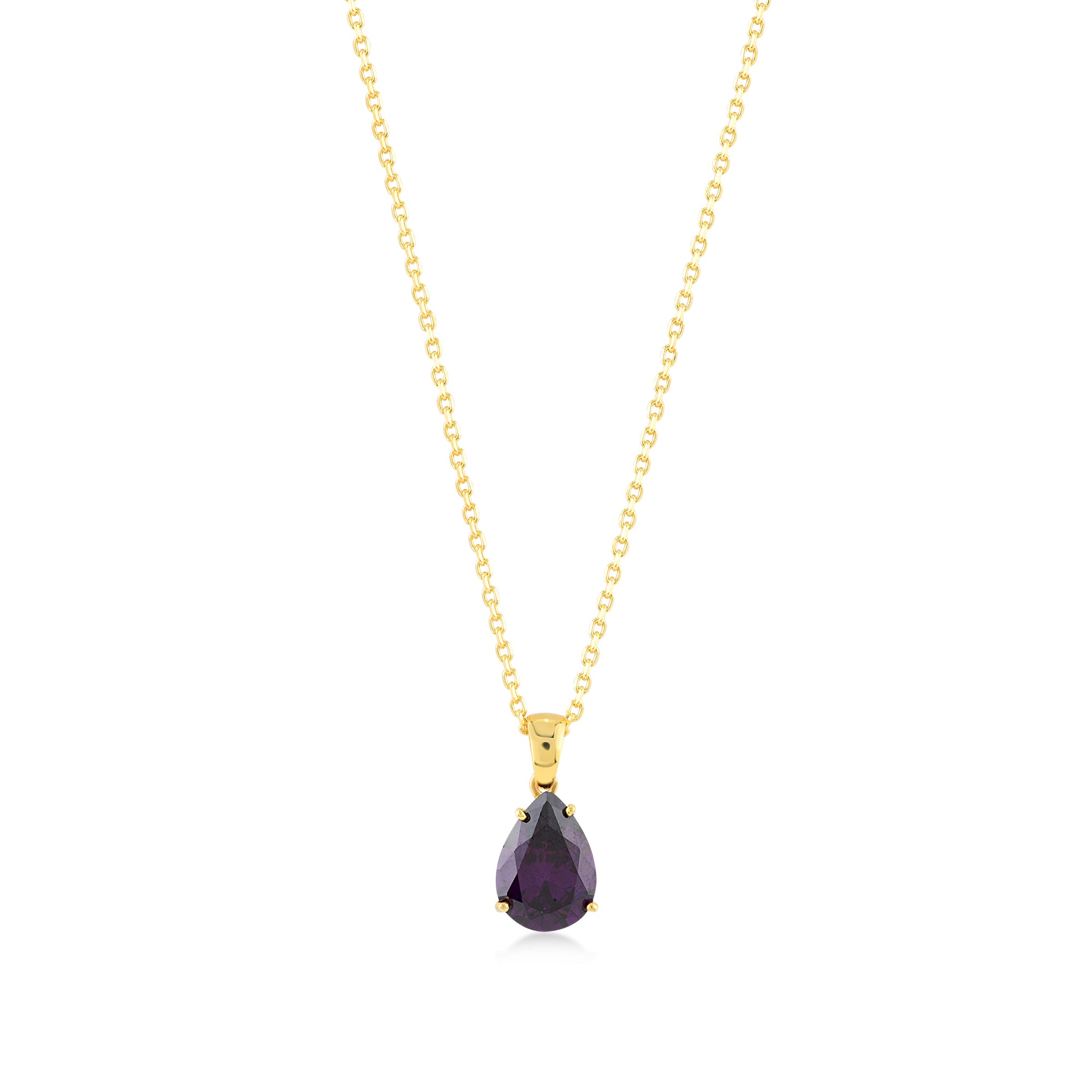 Ametist Zirconia Taşlı Damla Kesim Kolye