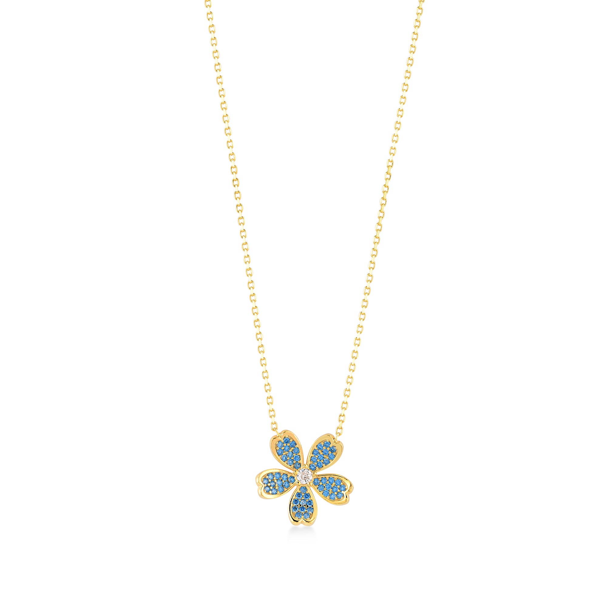 Aquamarine Zirconia Taşlı Daisy Kolye