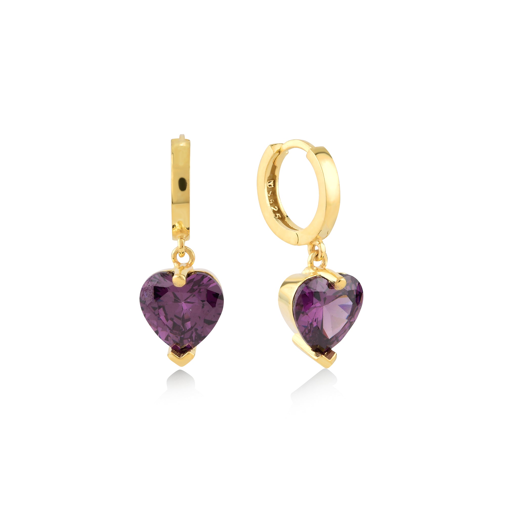 Ametist Zirconia Taşlı Kalp Kesim Küpe