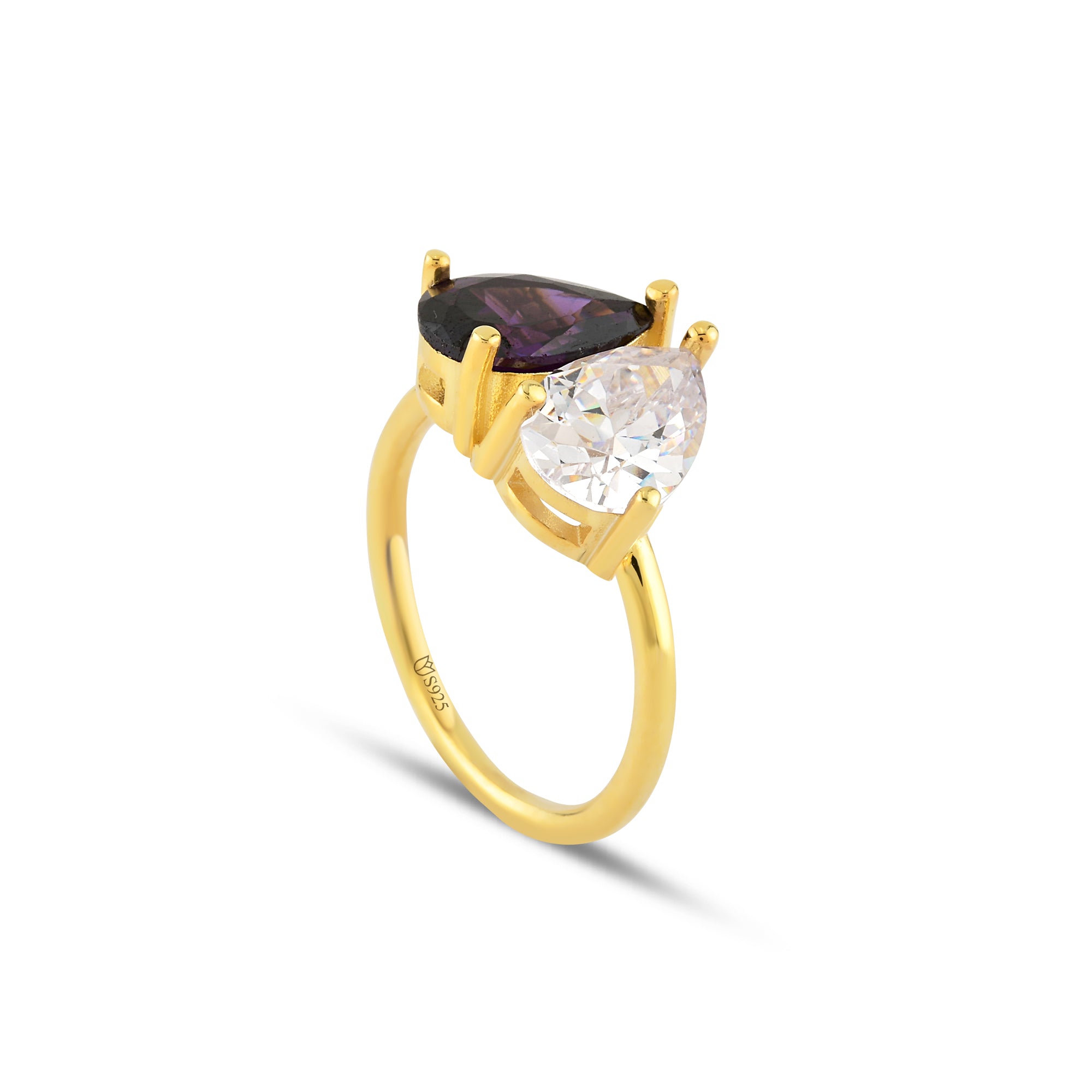 Ametist Zirconia Damla Taşlı | 24 Ayar Altın Kaplamalı 925 Ayar Gümüş