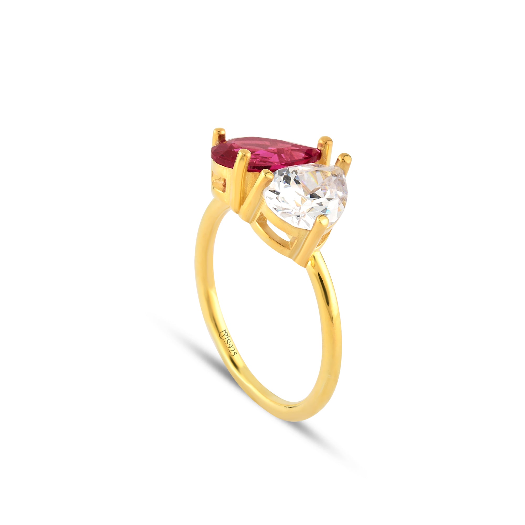 Yakut Zirconia Damla Taşlı | 24 Ayar Altın Kaplamalı 925 Ayar Gümüş