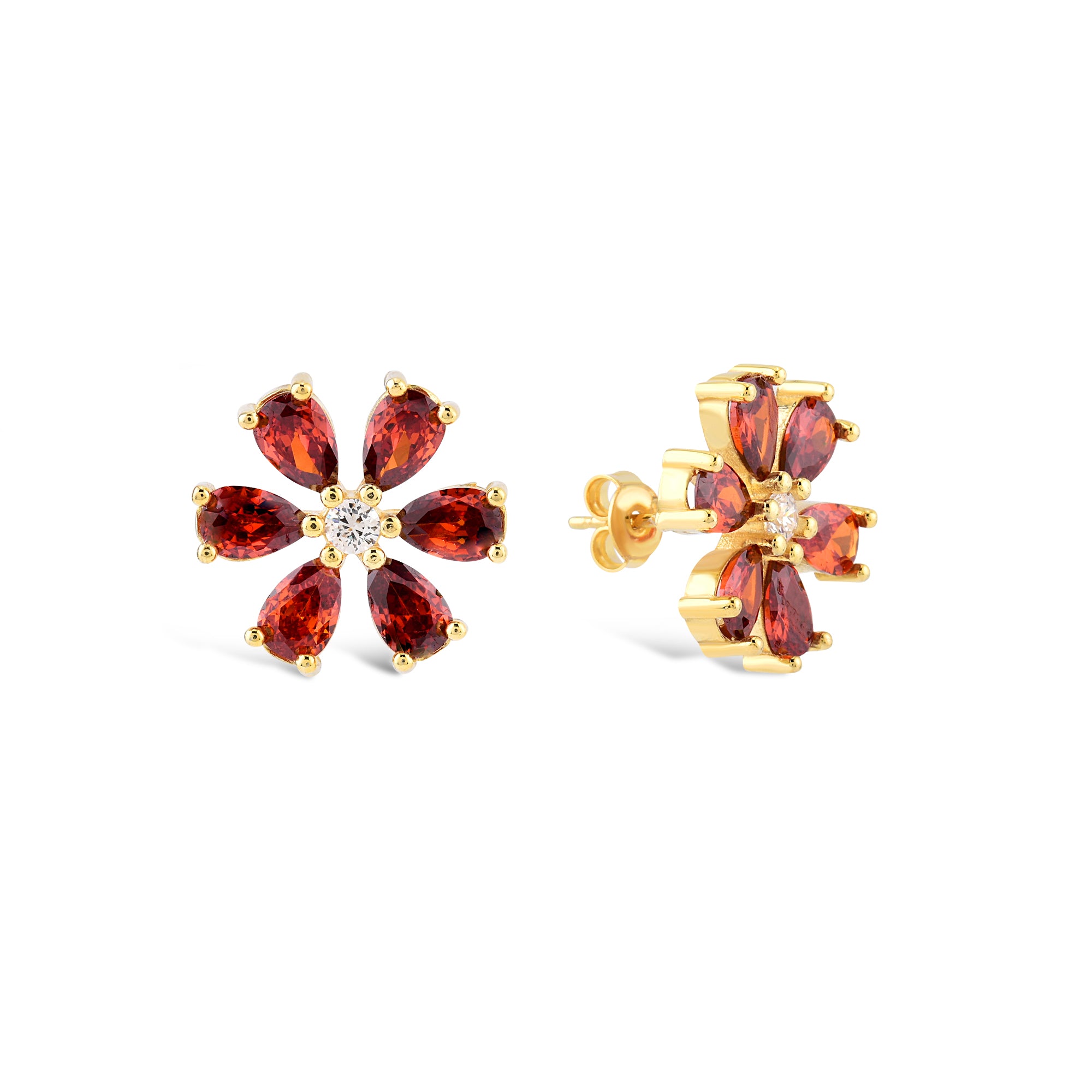 Garnet Zirconia Taşlı Damla Kesim Daisy Küpe