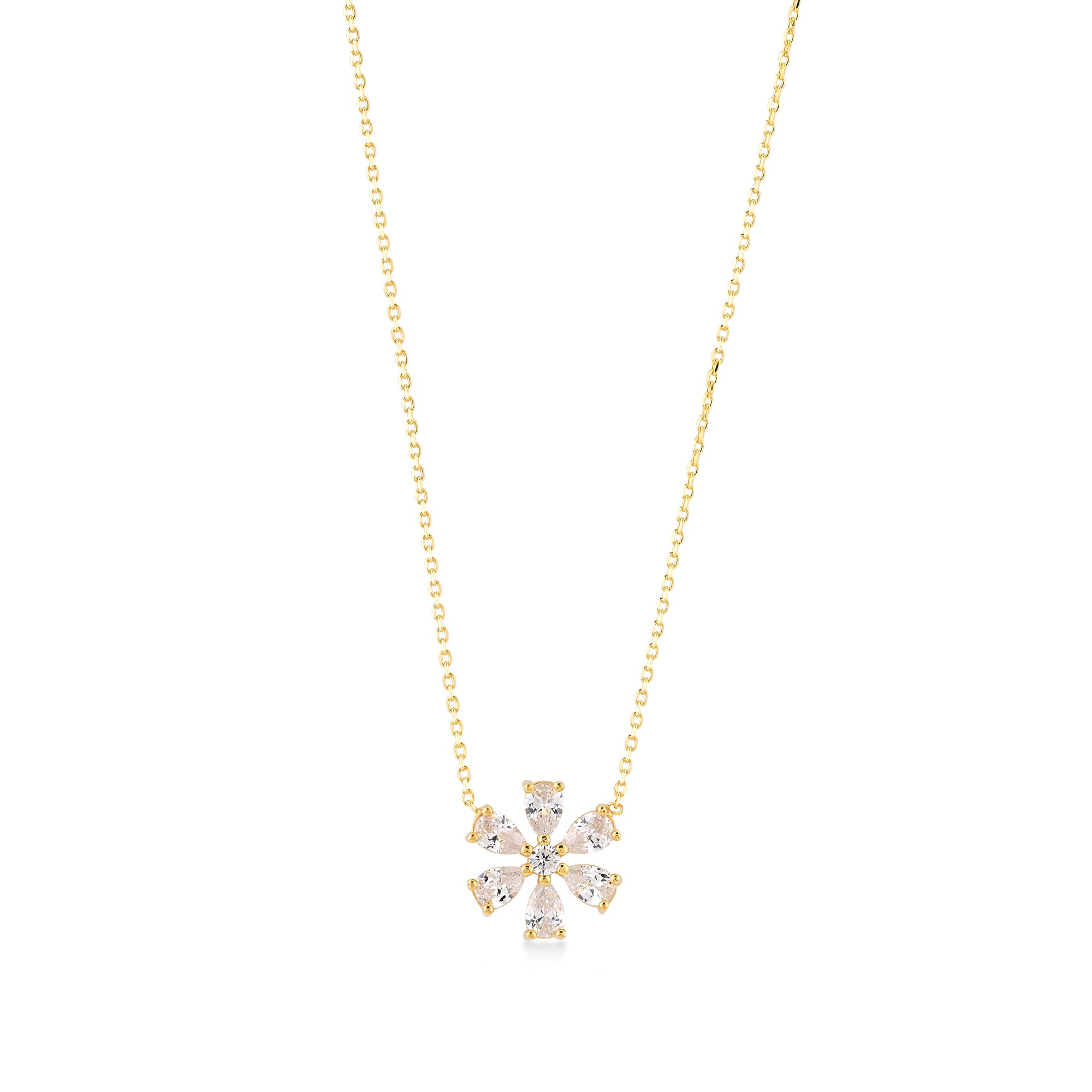 Kubik Zirconia Taşlı Damla Kesim Daisy Kolye