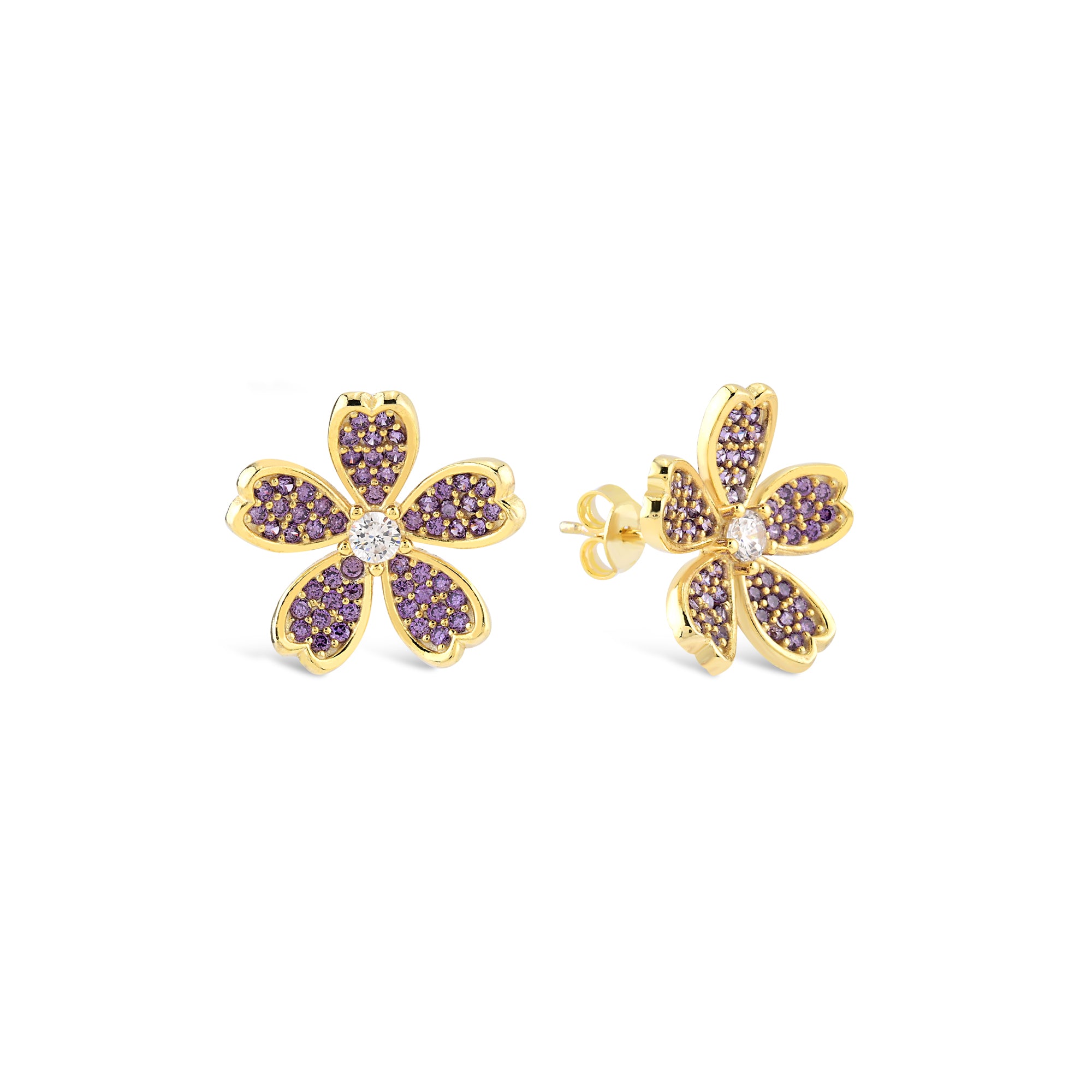 Ametist Zirconia Taşlı Daisy Küpe