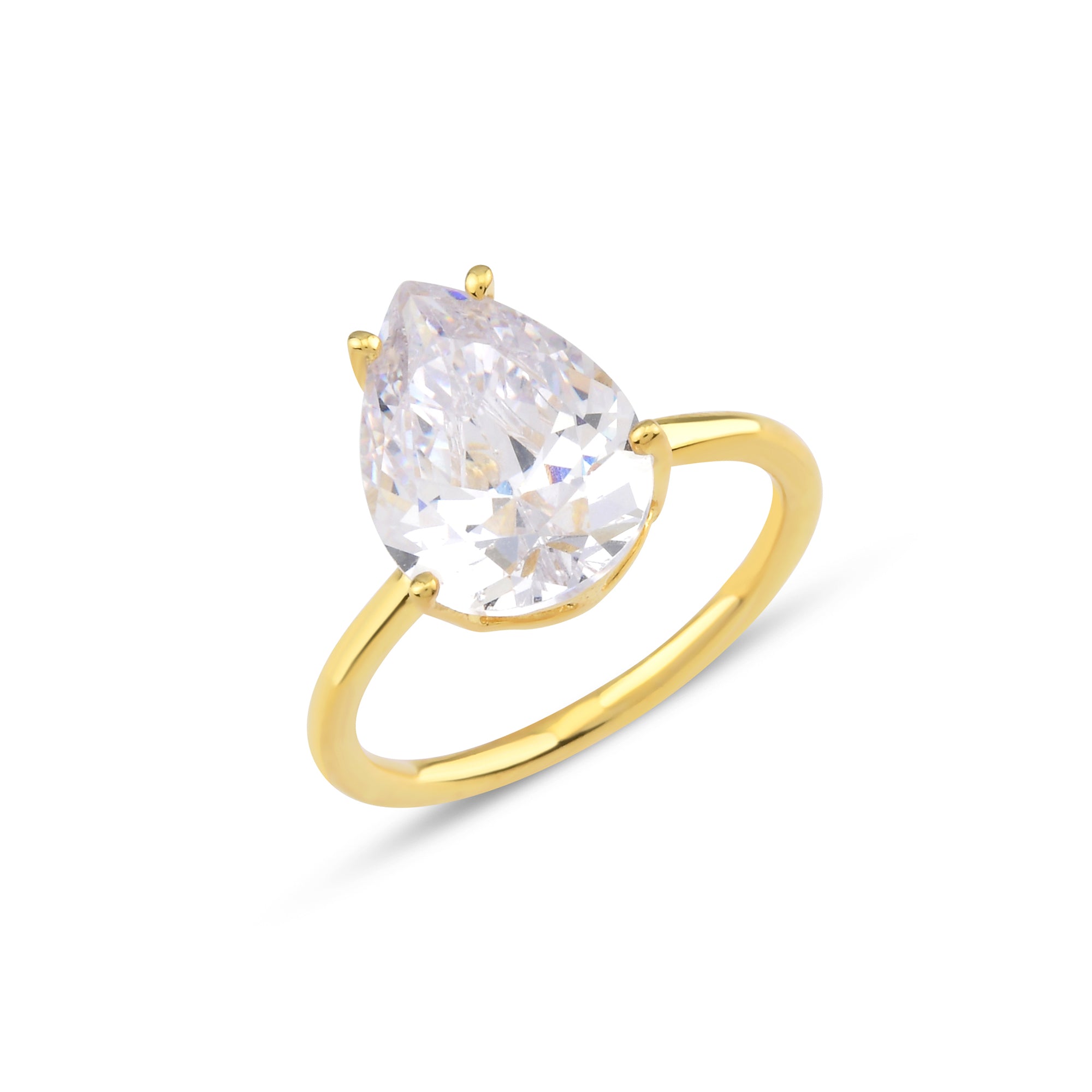 Kubik Zirconia Taşlı Damla Kesim Tektaş Yüzük