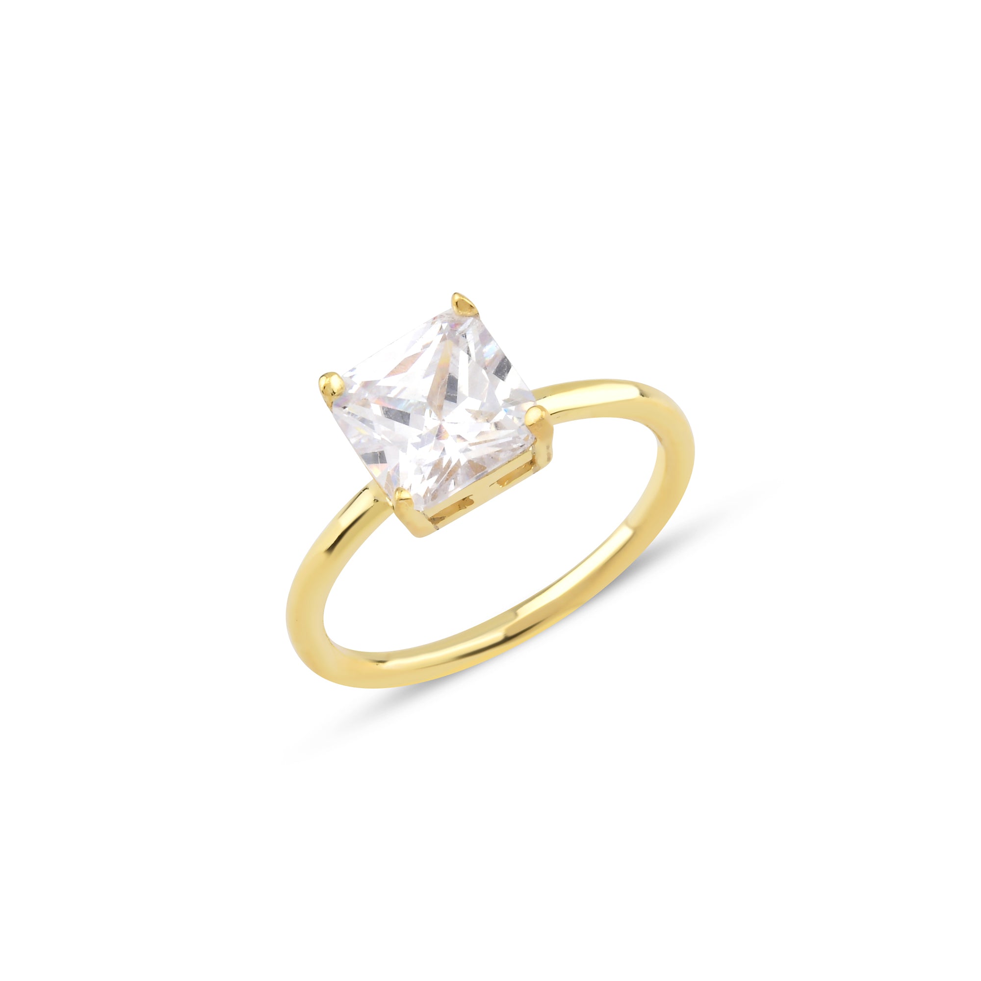 Kubik Zirconia Taşlı Kare Kesim Tektaş Yüzük