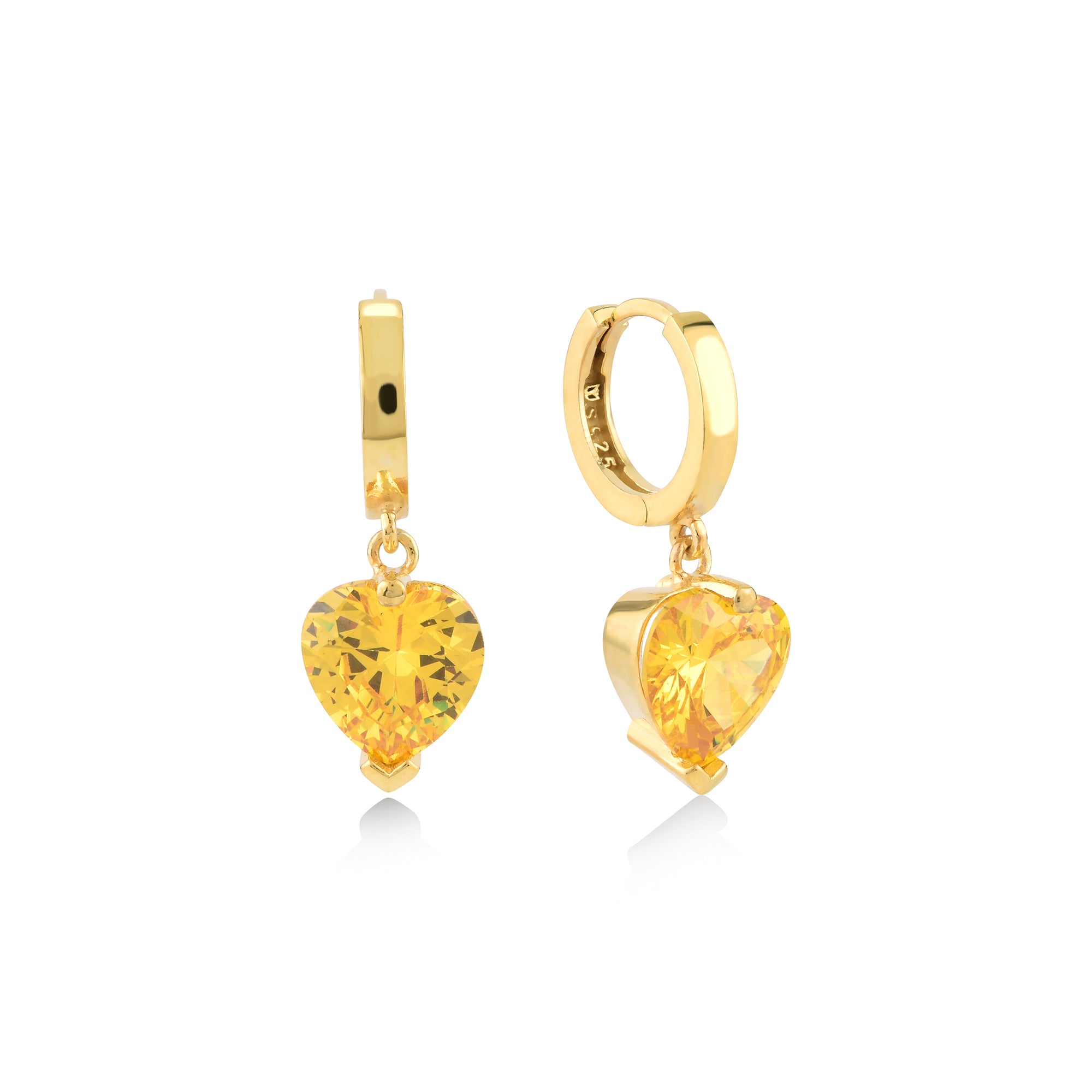 Sarı Zirconia Taşlı Kalp Kesim Küpe