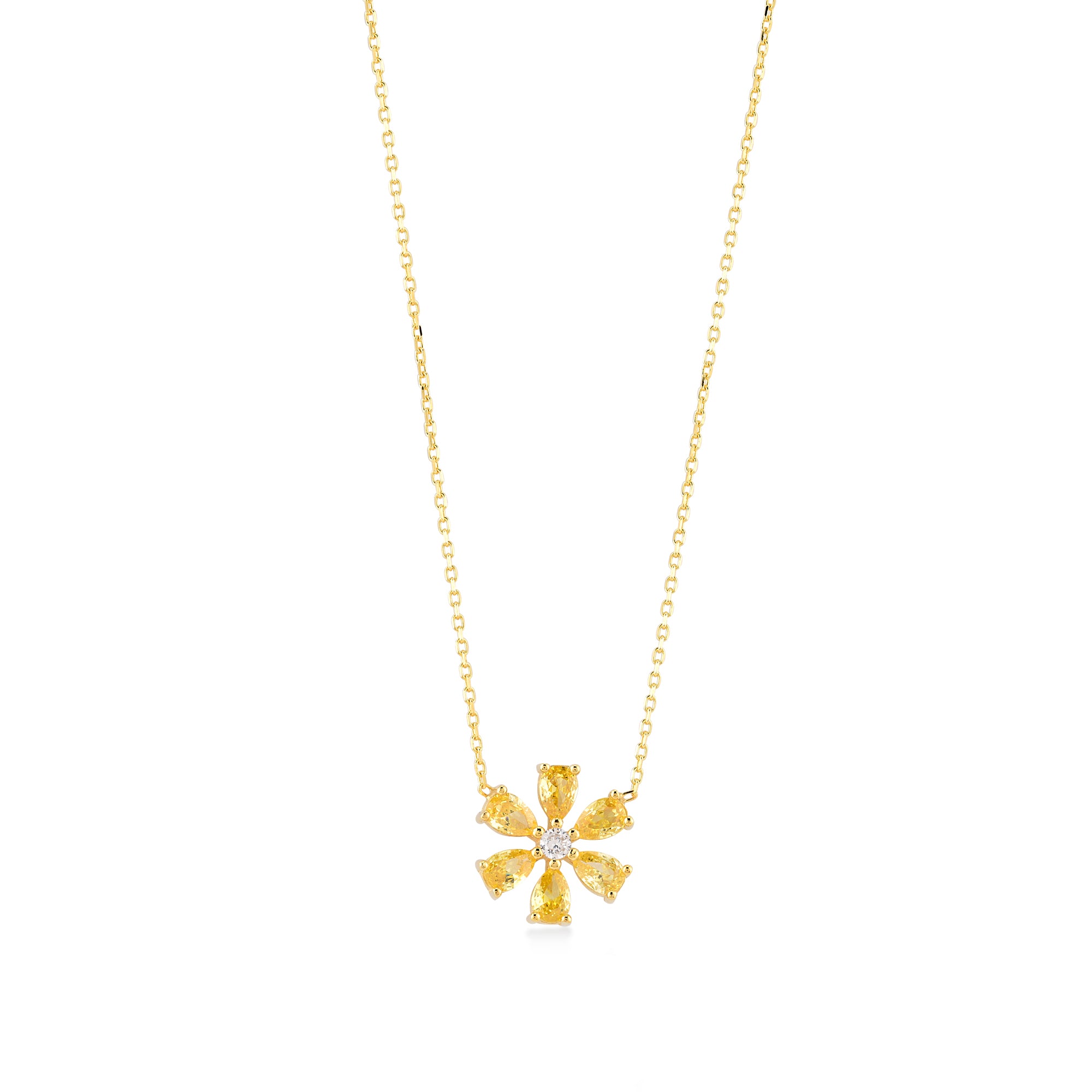 Sarı Zirconia Taşlı Damla Daisy Kolye