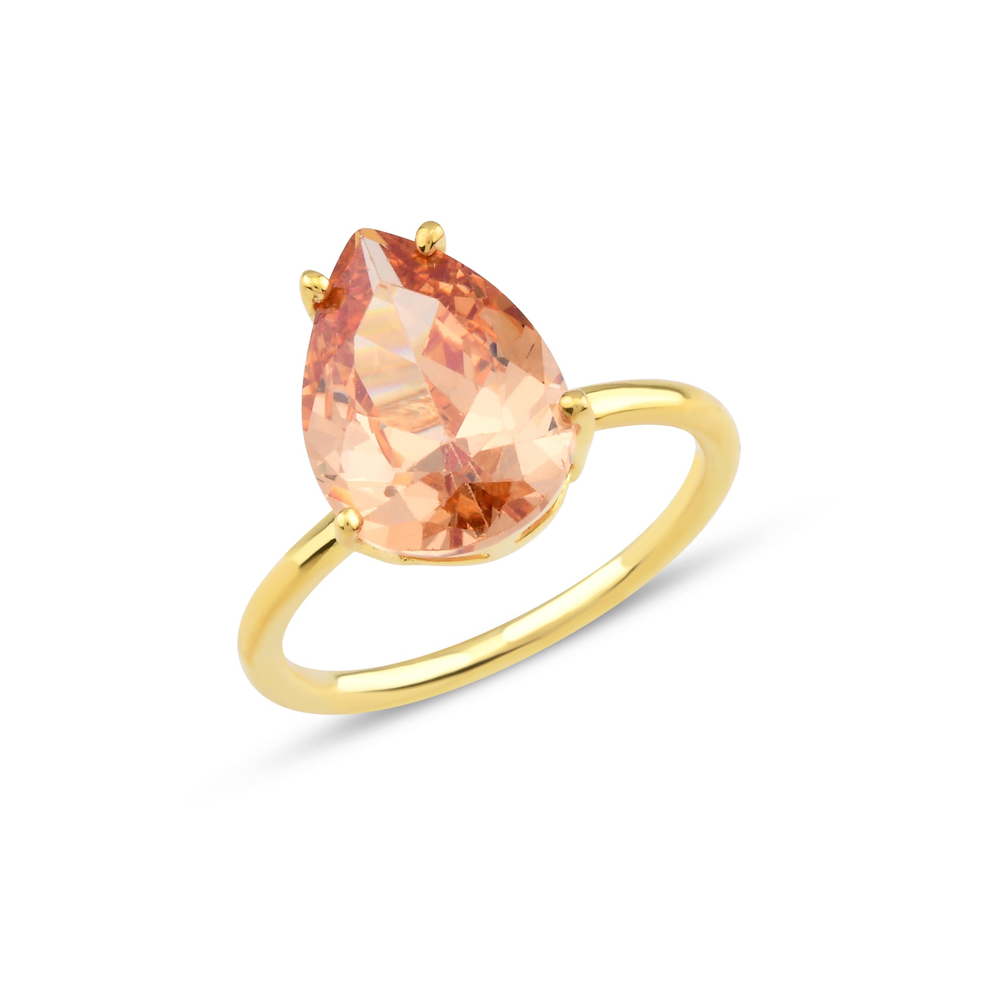 Champagne Zirconia Taşlı Damla Kesim Tektaş Yüzük