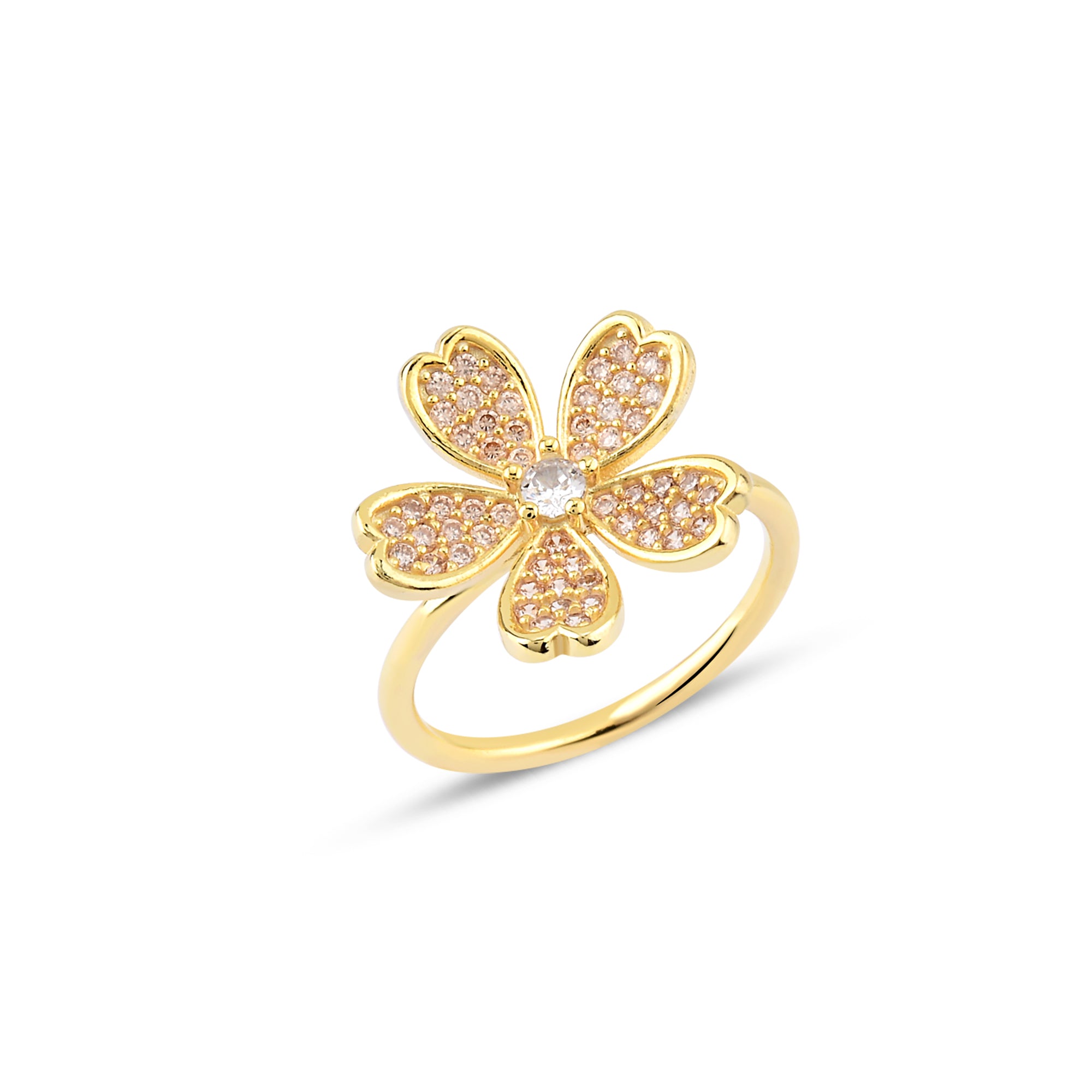 Champagne Zirconia Taşlı Daisy Yüzük