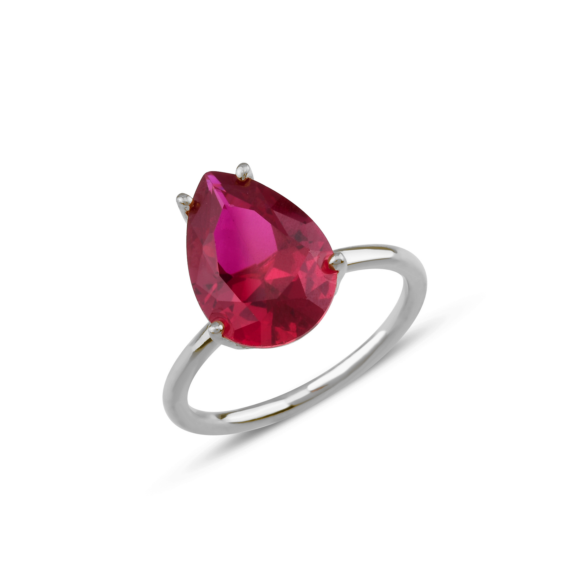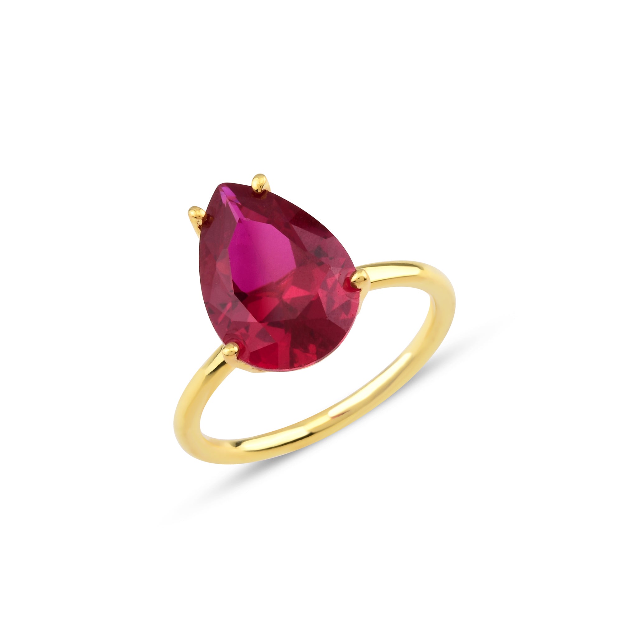Yakut Zirconia Taşlı Damla Kesim Tektaş Yüzük