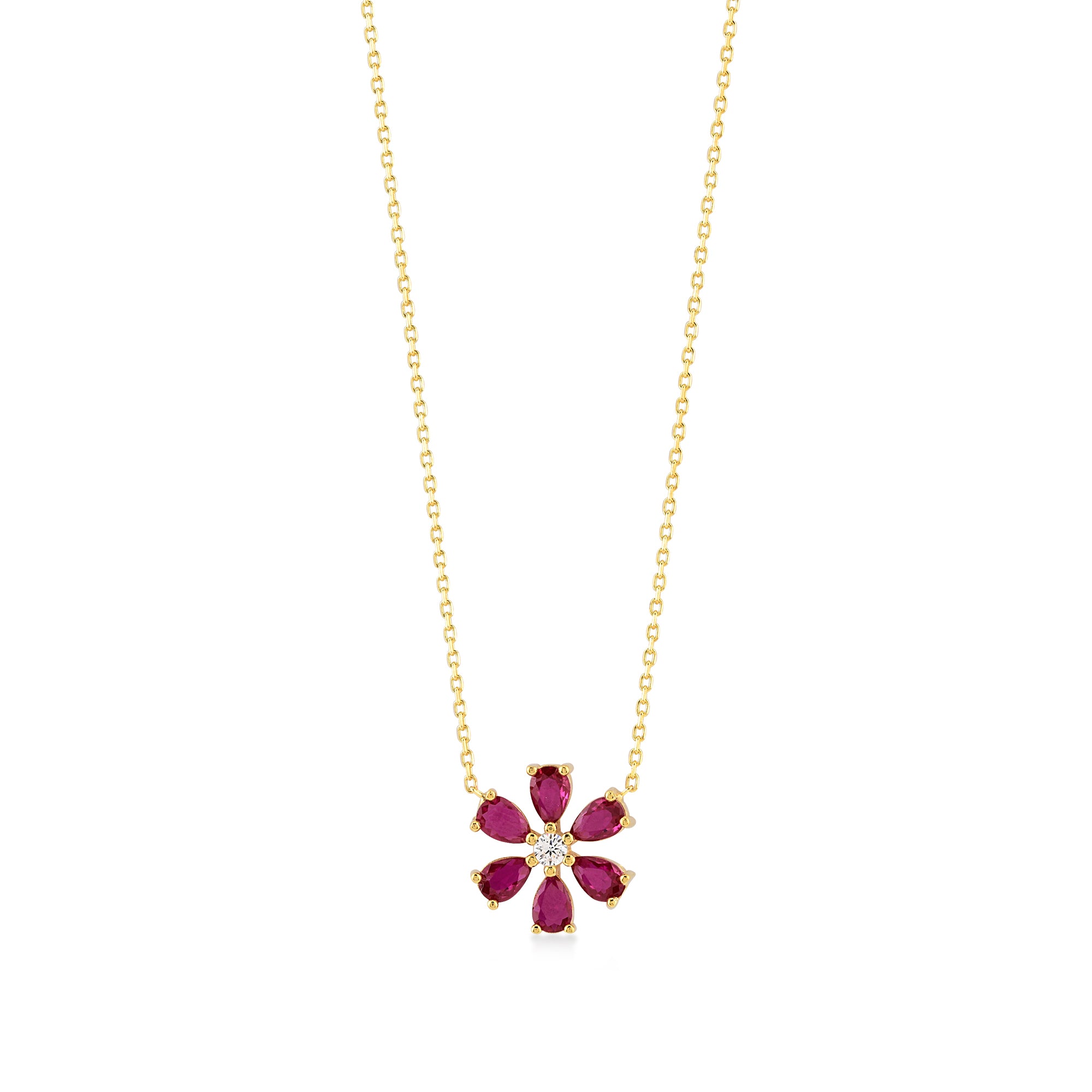 Yakut Zirconia Taşlı Damla Kesim Daisy Kolye