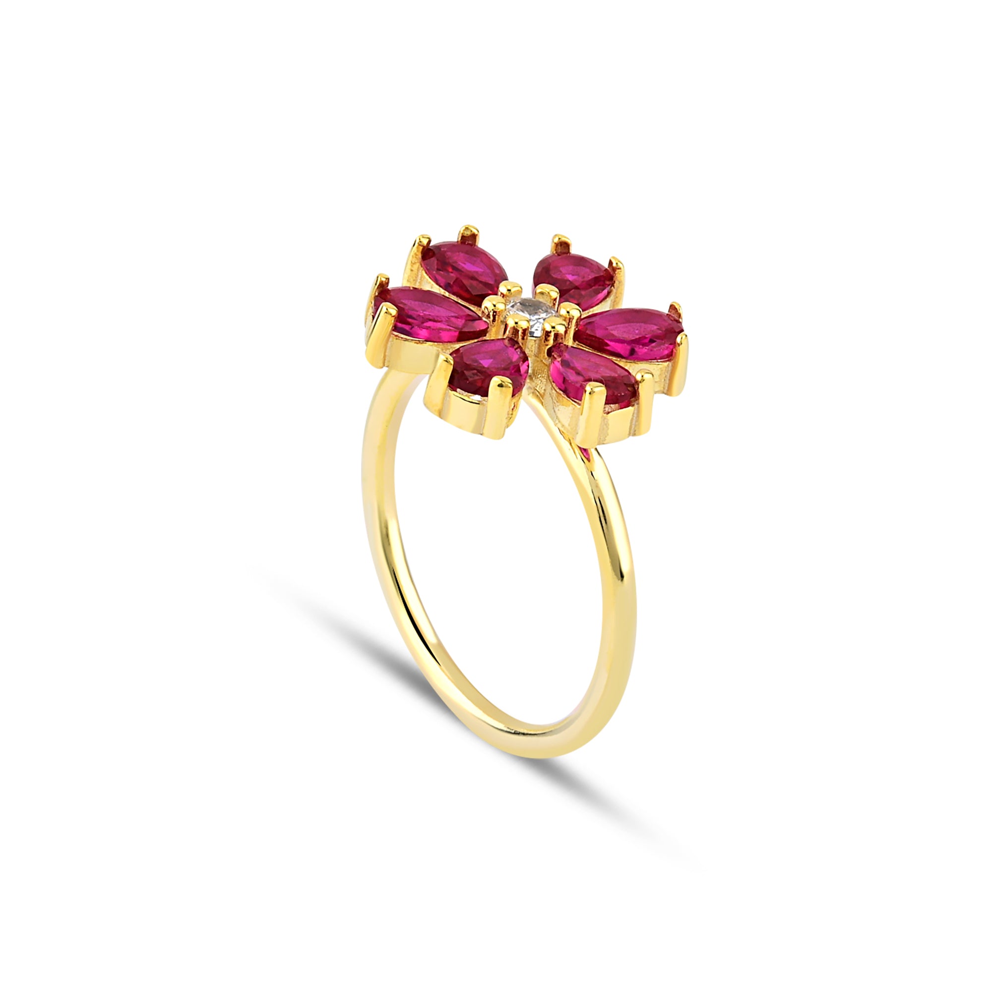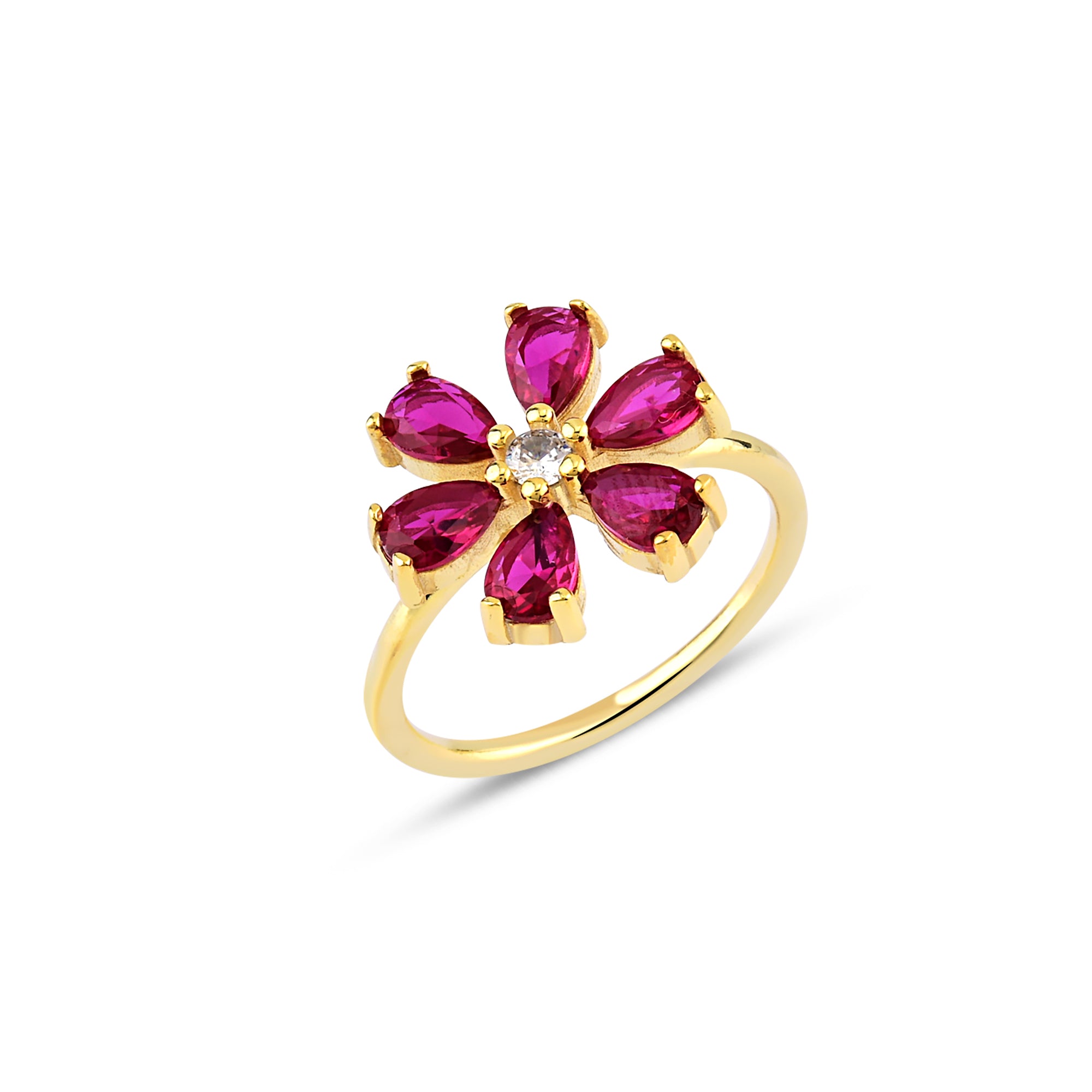 Yakut Zirconia Taşlı Damla Kesim Daisy Yüzük