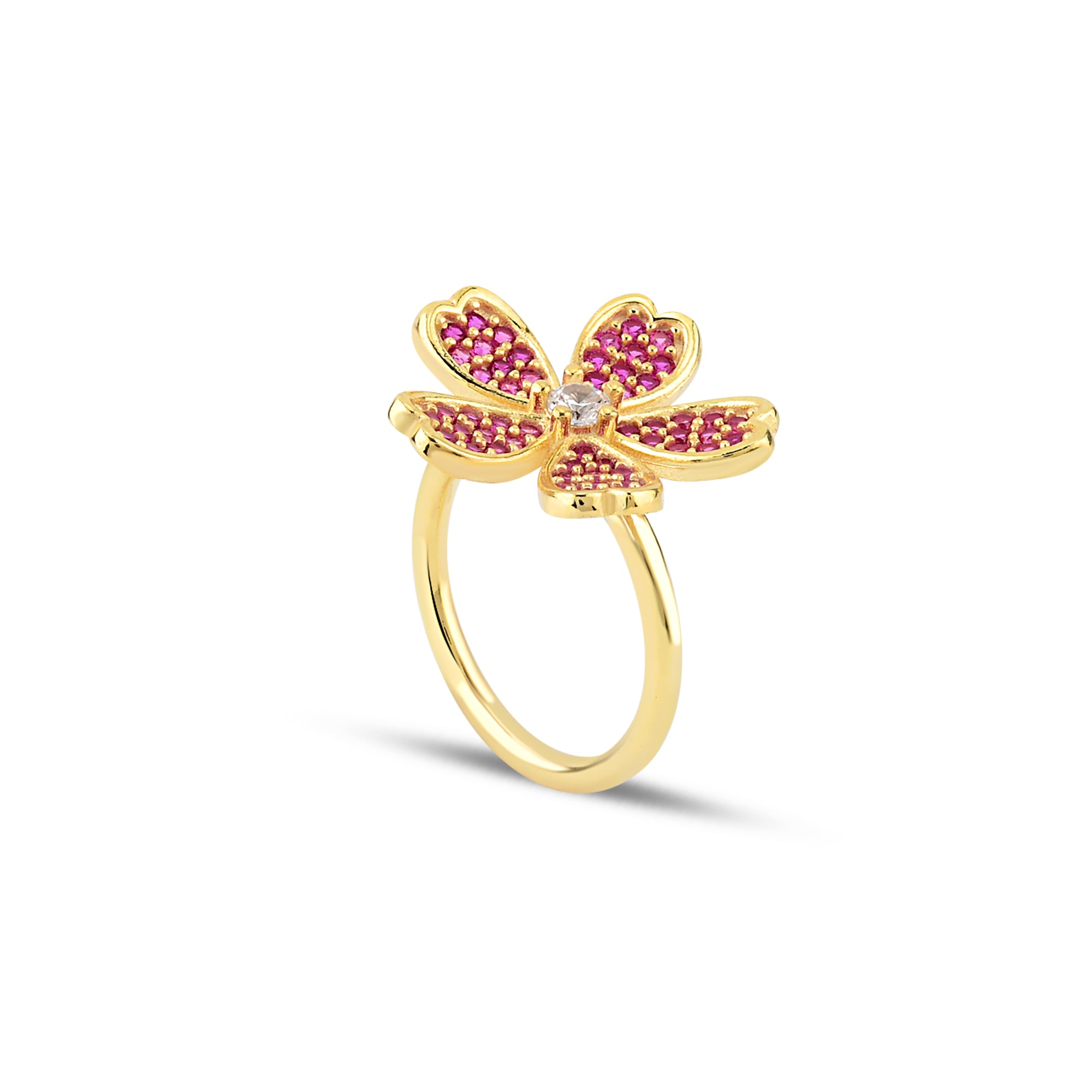 Yakut Zirconia Taşlı | 24 Ayar Altın Kaplamalı 925 Ayar Gümüş