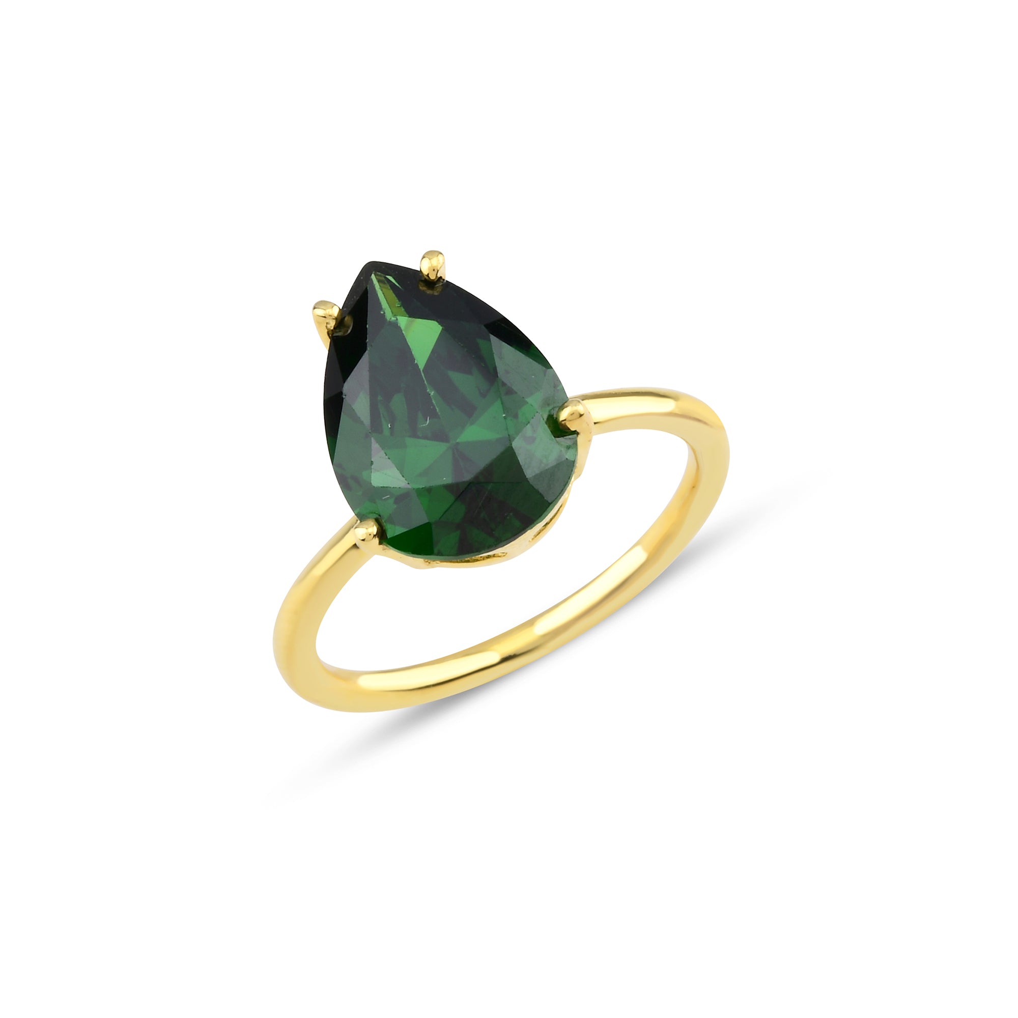 Zümrüt Zirconia Taşlı Damla Kesim Tektaş Yüzük