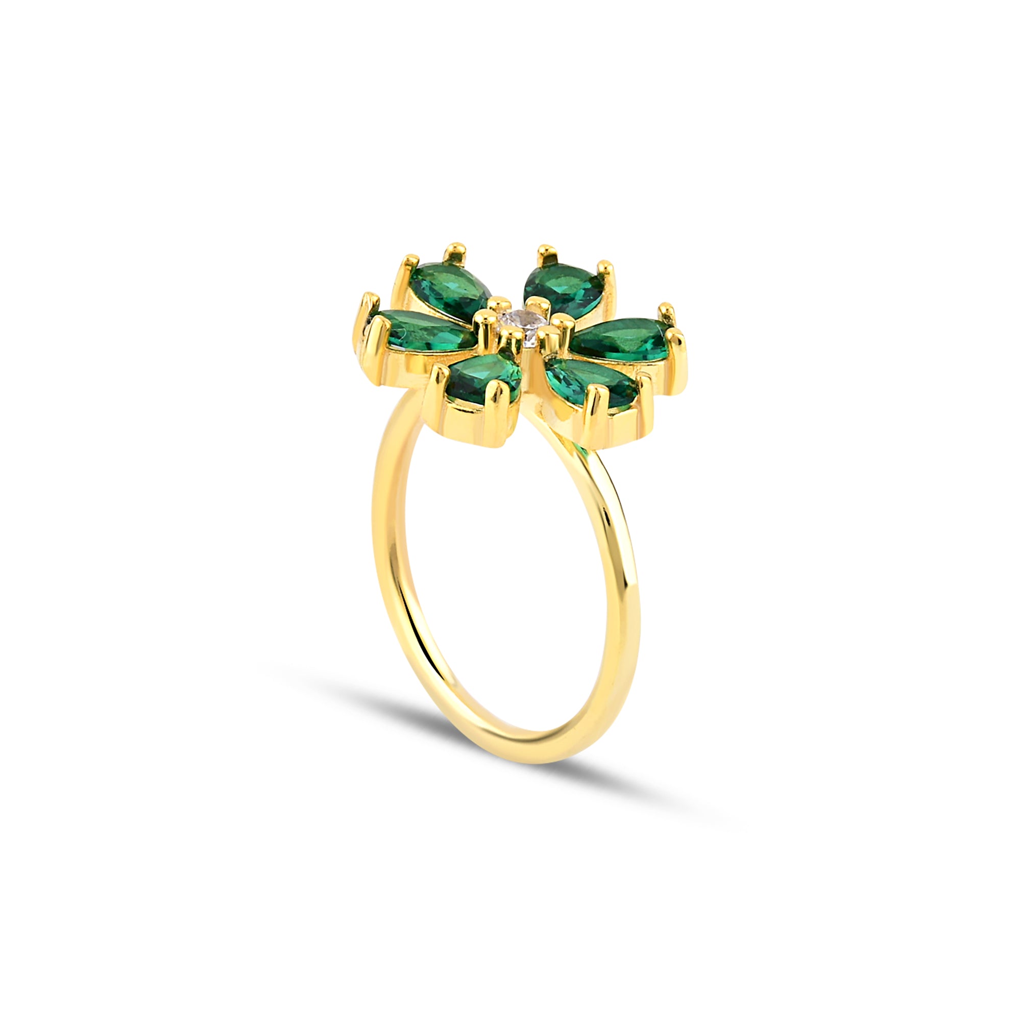 Zümrüt Zirconia Taşlı Damla Kesim Daisy Yüzük