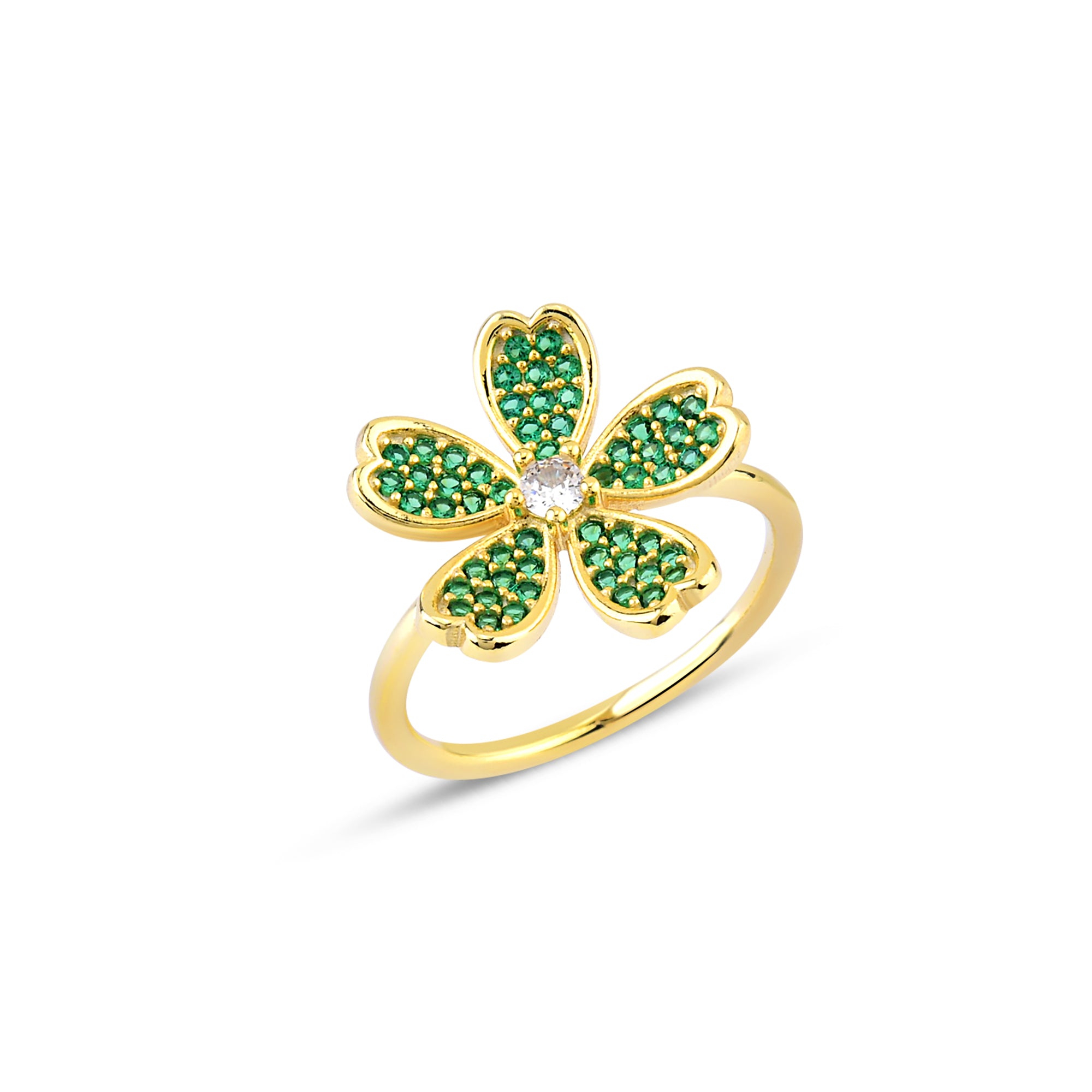 Zümrüt Zirconia Taşlı Daisy Yüzük