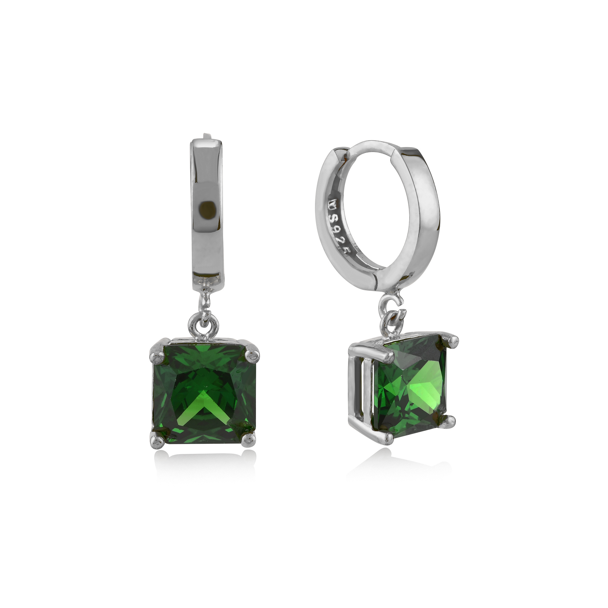 Zümrüt Zirconia Taşlı Kare Kesim Küpe
