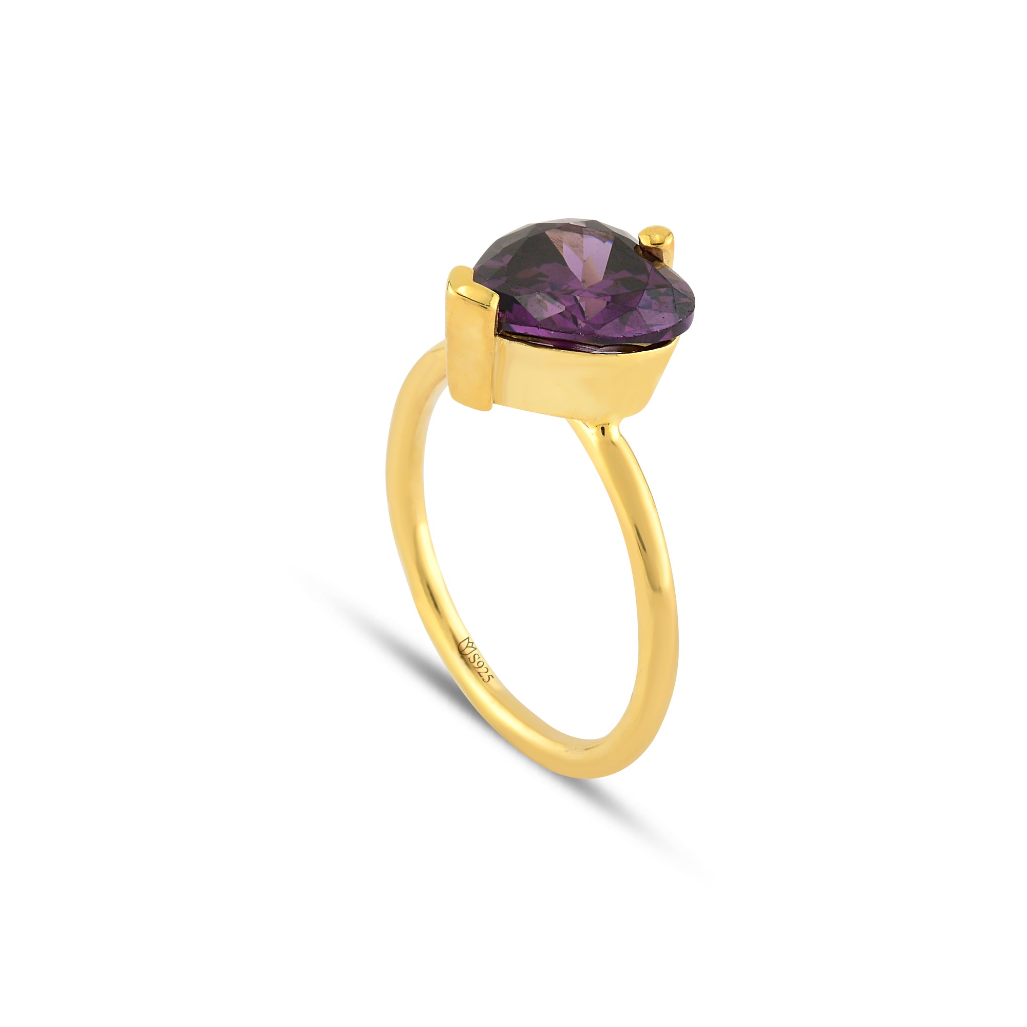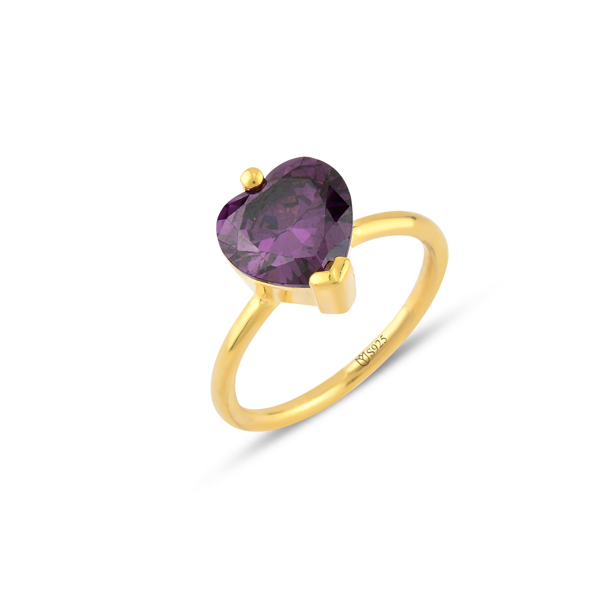 Ametist Zirconia Taşlı Kalp Kesim Tektaş Yüzük