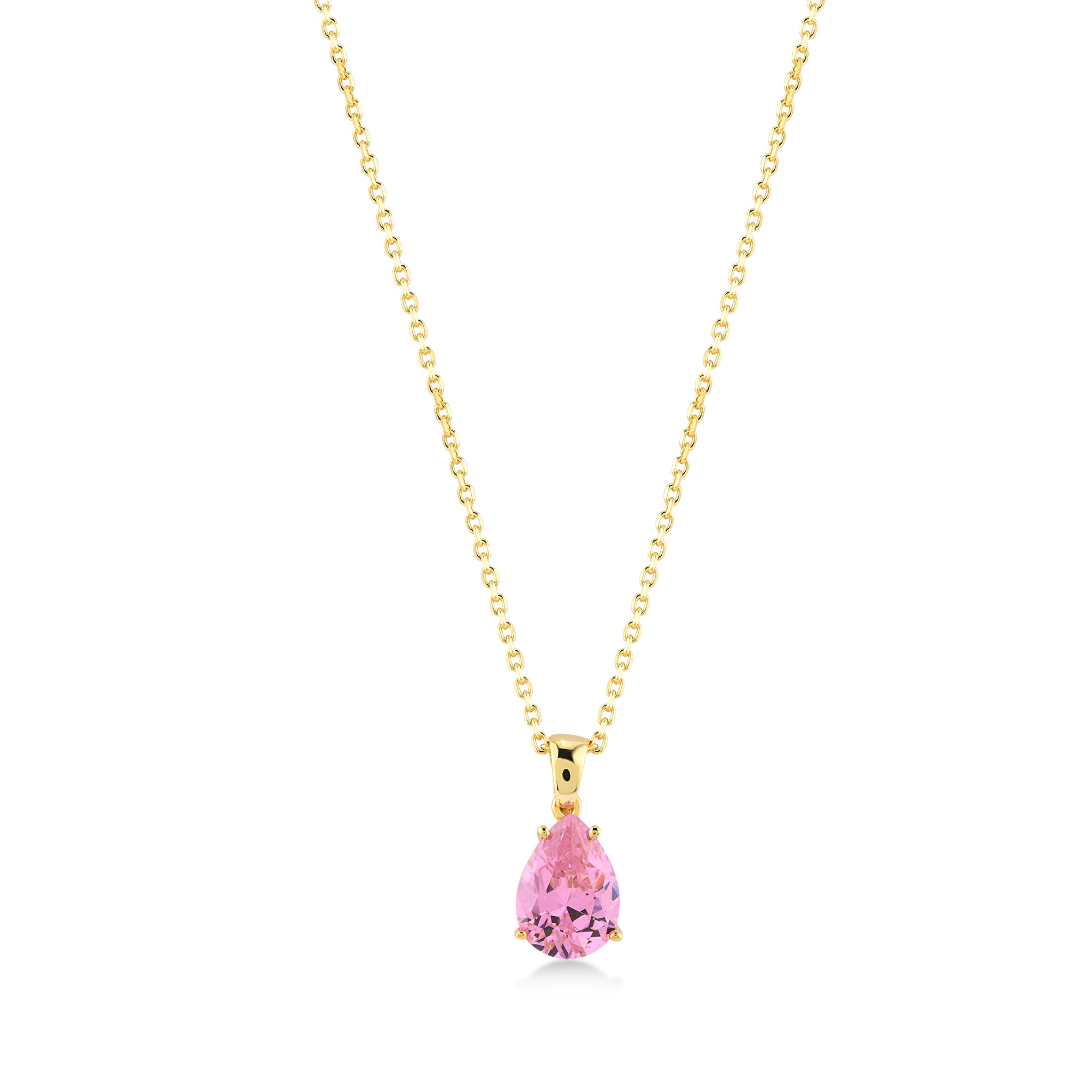 Pink Zirconia Taşlı Damla Kesim Kolye